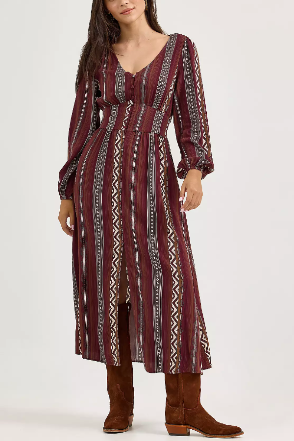 Burgundy HIGH WAIST LEGGINGS w/ Aztec design Pants