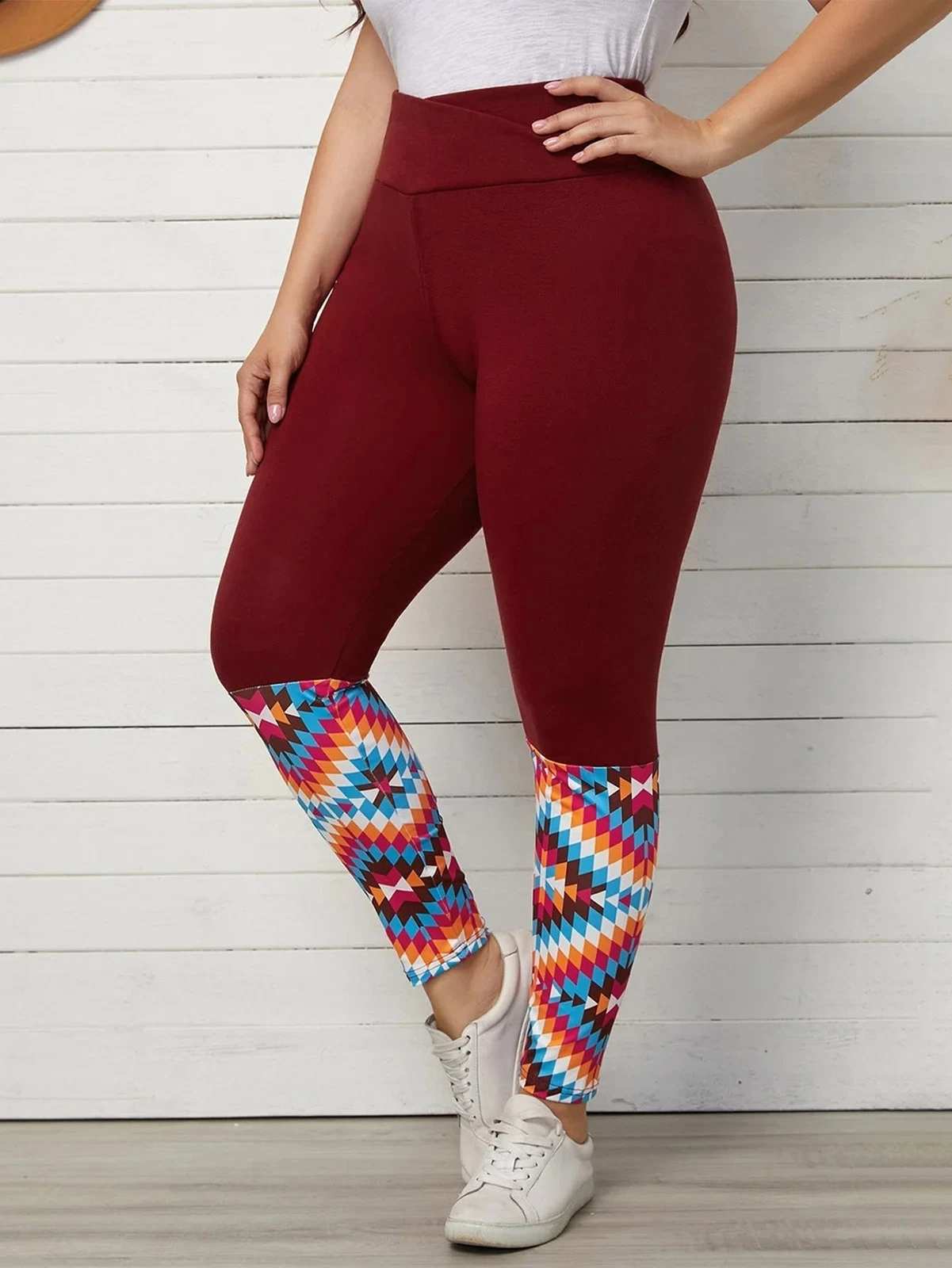 Crossover High Waist Aztec Print Patchwork Yoga Leggings