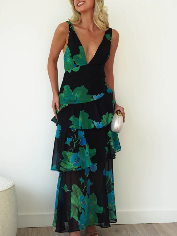 Elegant Personalized Painted Print A-Line Maxi Dress
