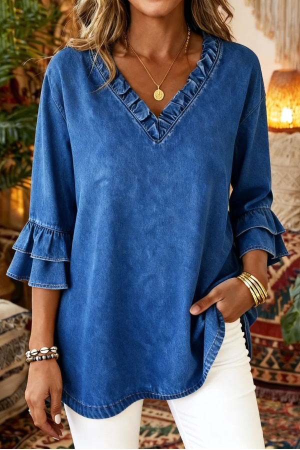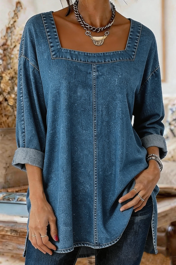 Women's Casual Long-sleeved Washed Cotton Denim Jumpsuit