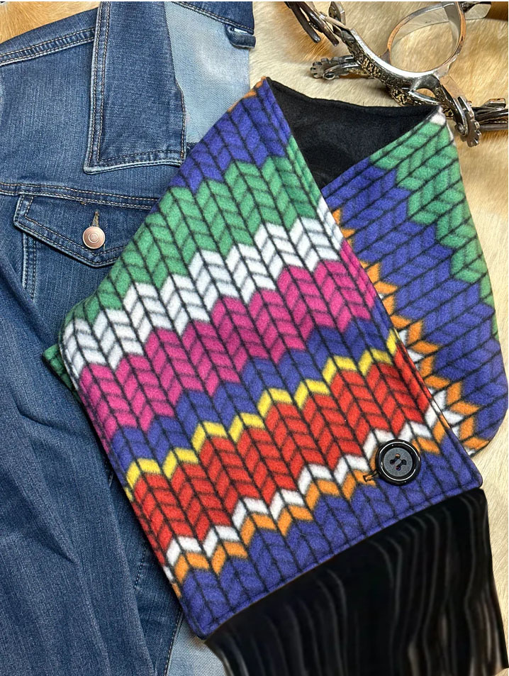 Women's Western Fringed Shawl -Blue/Red Aztec Pattern