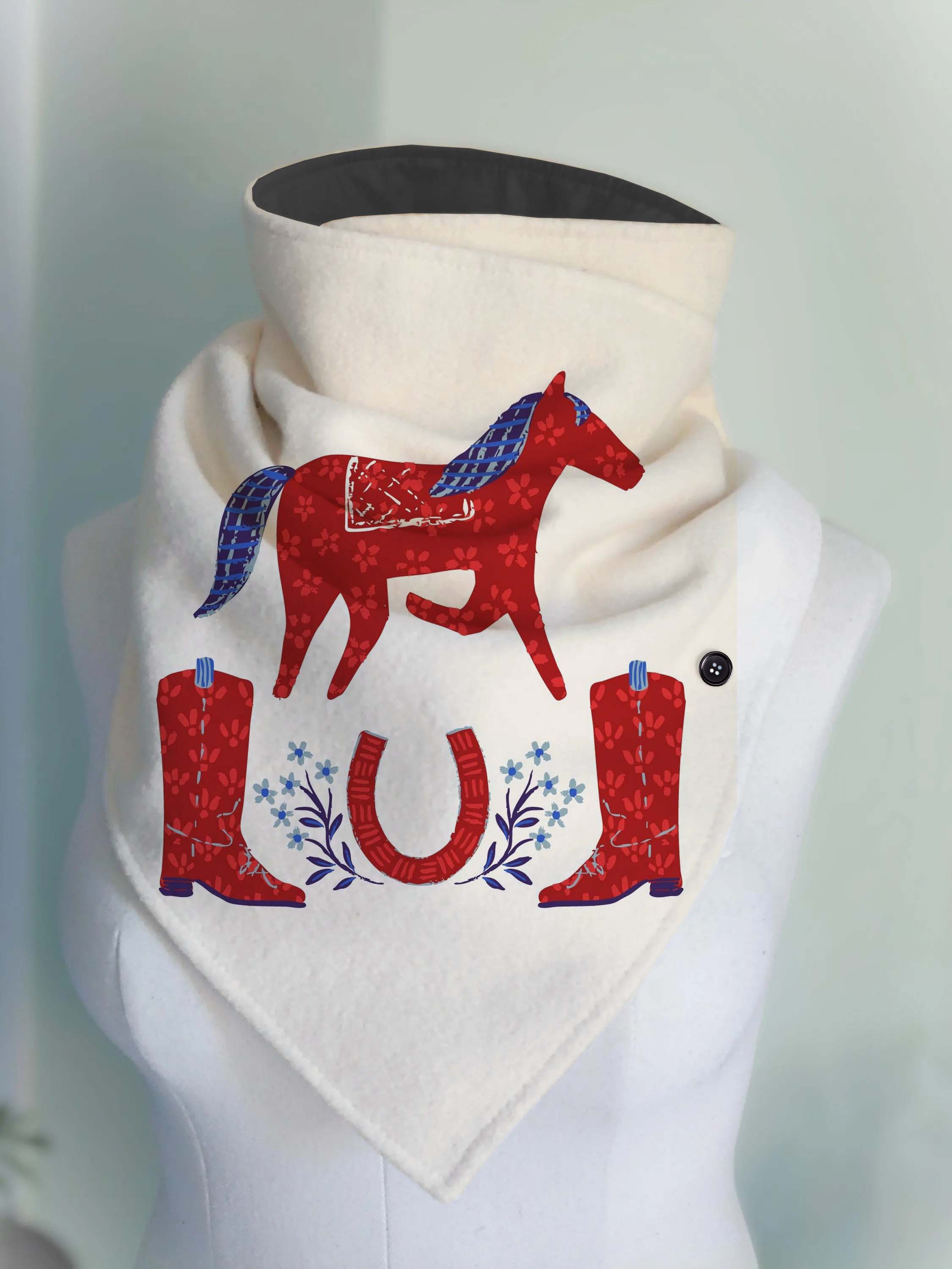 Western Cowboy Gray Print Sherpa Warm Neck Hood