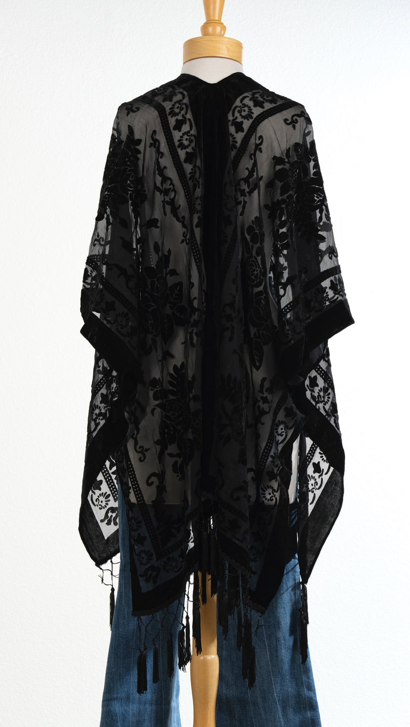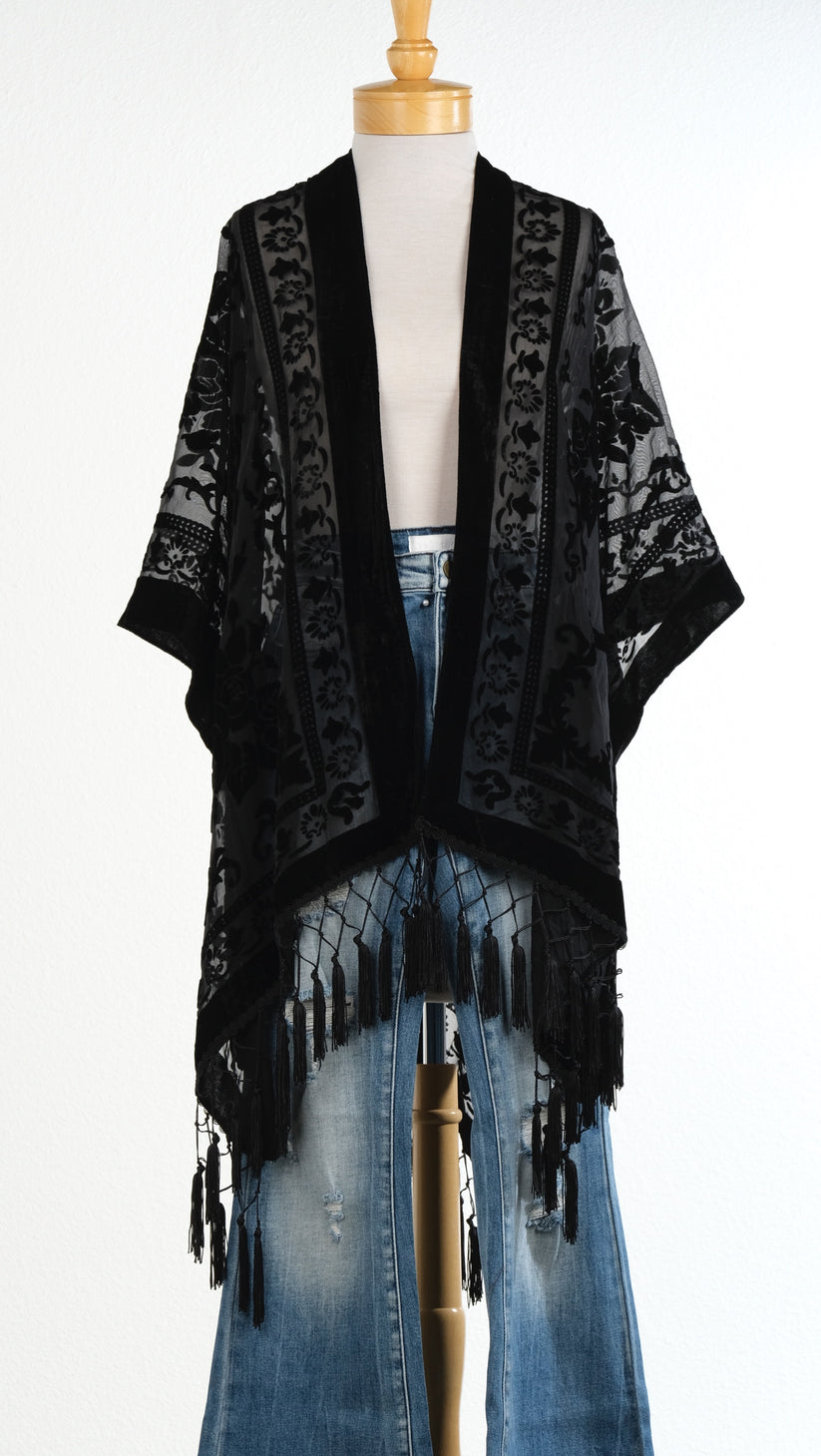 Luxe kimono - Featuring a velvet floral print design and fringe hem.