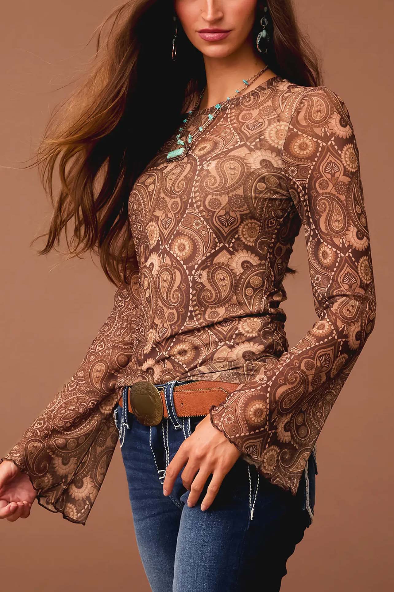 Find the allure of fall fashion with the Sterling & Stitch Paisley Mesh Top. This chic top, adorned with a paisley pattern in a delicate mesh fabric, captures the essence of seasonal style. Whether it's paired with denim jeans or layered under cozy sweaters, this layering top will add a little boho to your wardrobe.