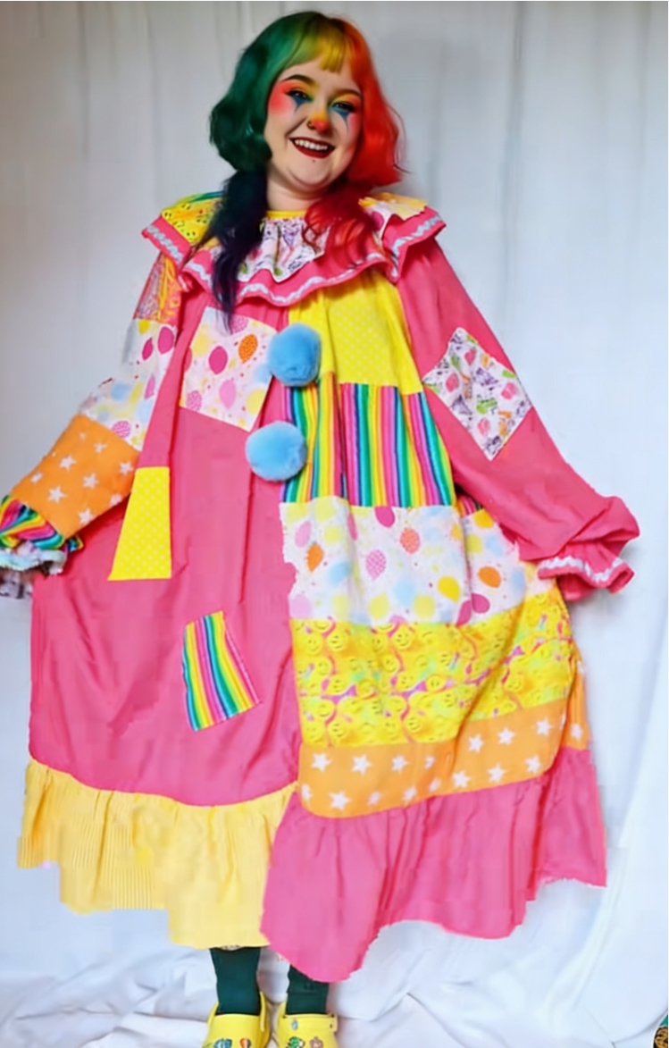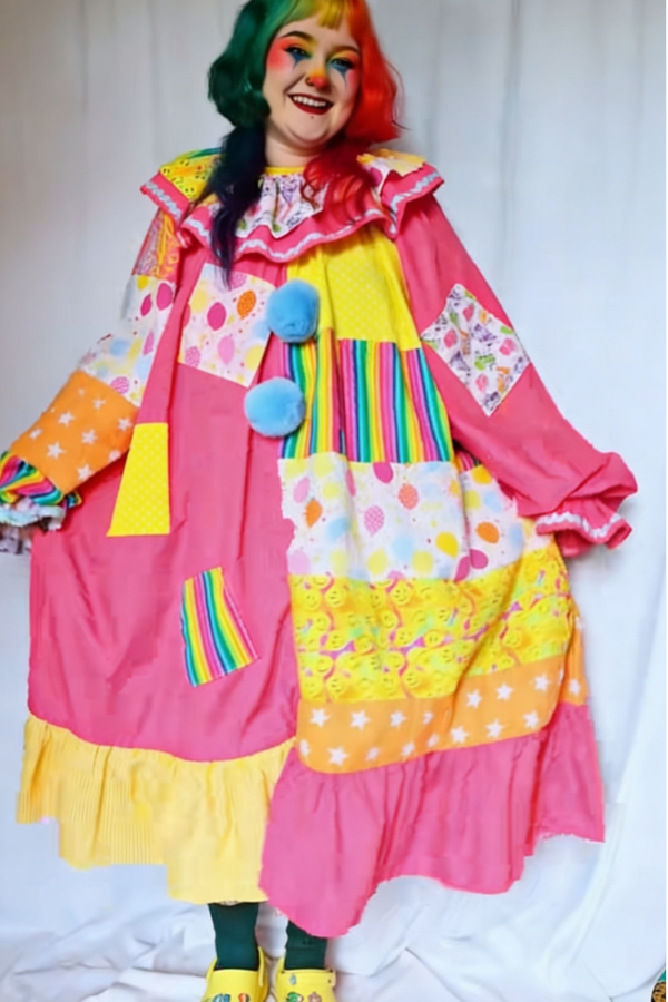 Pink & Yellow Color-Block Smiling Clown Costume
