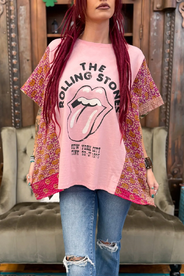 DetailsOne of a kind!Washed Vintage Graphic Tee with Batwing SleeveColor: BoneMaterial: 50% Cotton50% Recycled Mixed Fabric