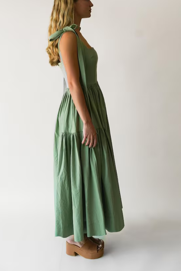 The fluffy, double-layered pleated skirt creates an airy feel when you move, retaining the elegance of vintage dresses while the relaxed fit reduces formality, making it perfect for everyday wear. The length is adjustable, allowing you to tie a bow for a sweet touch or adjust the tightness to suit different body types and shoulder shapes. The square neckline reveals the collarbone for a refined look, and the cinched waist naturally enhances the waist-to-hip ratio, offering some forgiveness around the midsection. The double-layered pleats add a sense of volume to the dress, but the lightweight fabric ensures comfort and unrestricted movement.