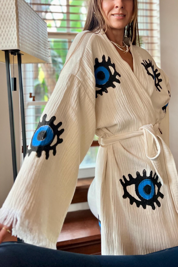 Large sleeves + overlapping V-neck + belt design create an atmosphere of 'laziness without losing a sense of occasion'. When worn as loungewear, it is 'exquisite sleepwear', and when worn outside, it serves as a 'relaxed cardigan', suitable for various scenarios.