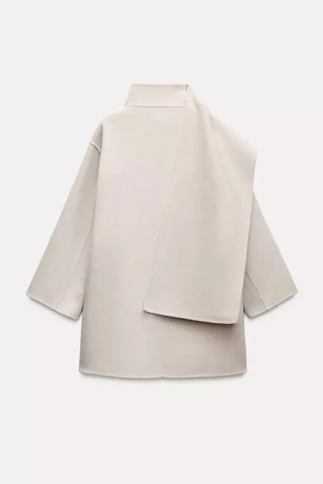 The wrap Coat has an oversize silhouette featuring an asymmetrical scarf panel and integral side pockets Handwash cold, dry flat